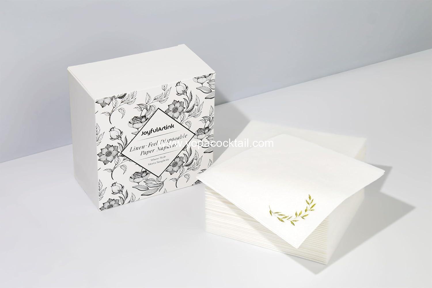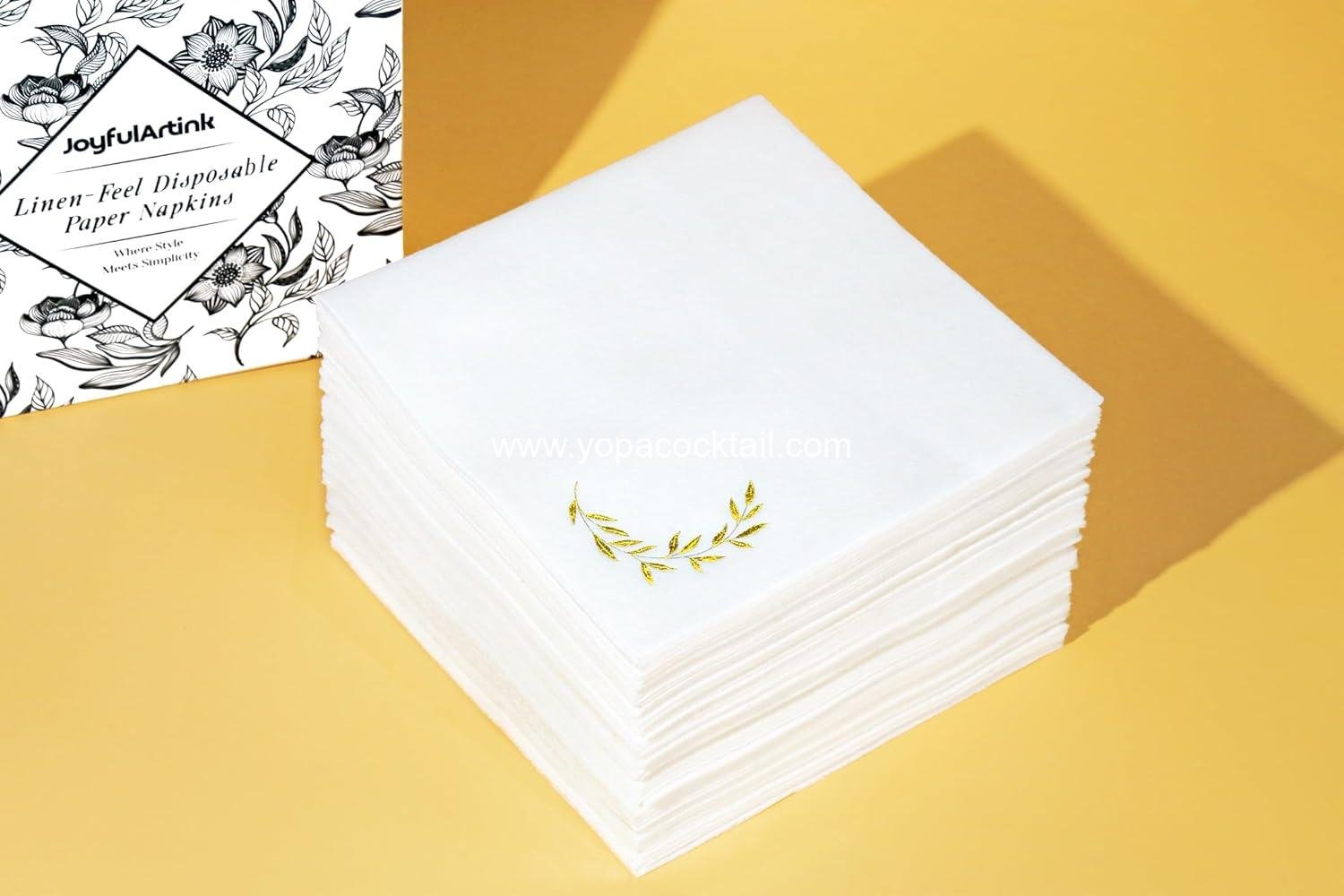 Our premium-quality paper napkins are made from luxurious air-laid material, offering a linen-like feel that is both thick and absorbent. With a sophisticated champagne gold foil design featuring delicate olive branch leaves on a crisp white background, these napkins bring elegance to any table setting. Perfect for upscale gatherings, cocktail parties, weddings, and special occasions, they add a refined touch to your dining experience.